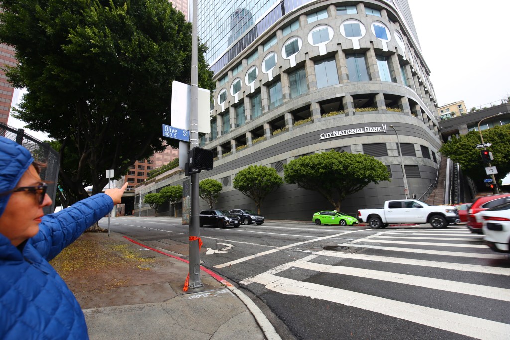 PAMELA: So this is the U.S. Bank building, so I work there and that’s where I had my “aha” moment. Yeah. And I was like sitting down one day having my lunch looking down at Bunker Hill and I’m like, I need to do this project. I do. Yeah. I need to do it somehow. And so it was just all because I was here. I was sitting looking down at Bunker Hill where I saw the movie was created and I saw all the landmarks of all these different things of LA. And so that’s pretty much why I started my project with the legacy that’s so intense. Yeah.