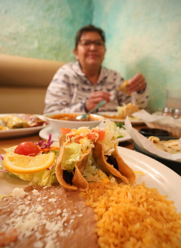 MOM: Well, looking at the menu, my goodness, I remember eating tacos with shredded beef. So that’s what I’m going to look for. And that’s what I want. Because it reminds me of when we were small. That’s, that’s the kind of tacos we had all the time; with shredded beef.